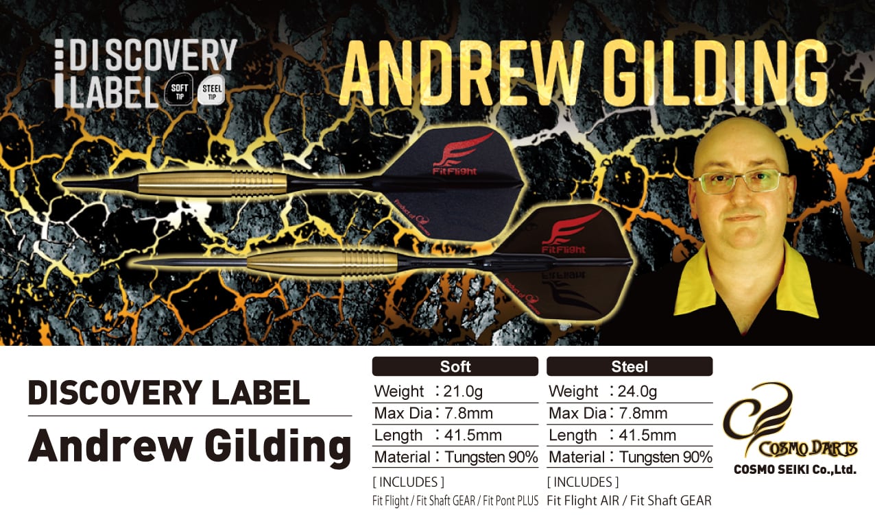 ”GOLDFINGER”のニックネームになぞらえたゴールドコーティングが目に飛び込んでくるAndrew Gilding(アンドリュー・ギルティング)選手のシグニチャーモデル。
